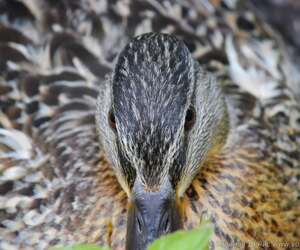 Самка кряквы насиживает кладку