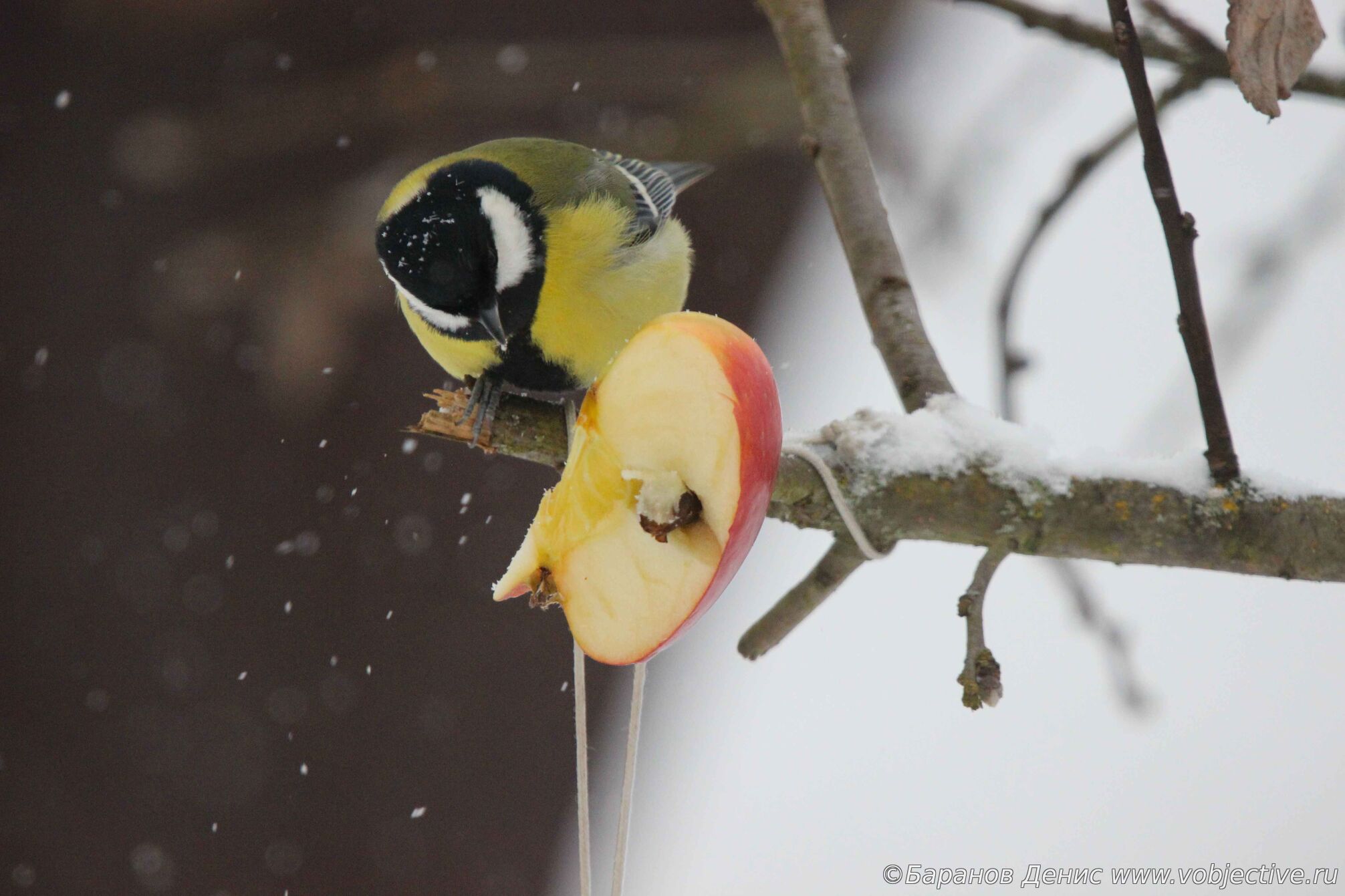 Средний пестрый долбит вмерзлую пшенную кашу
