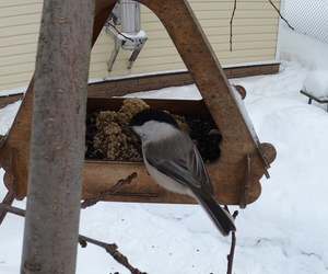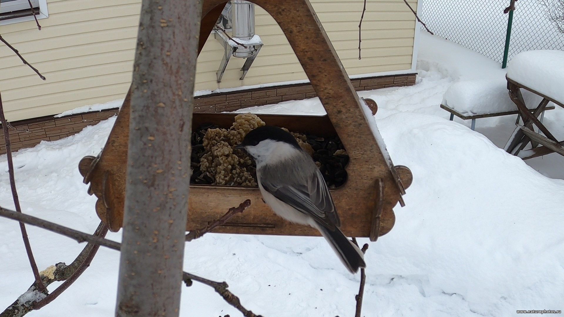Буроголовая гаичка на кормушке.