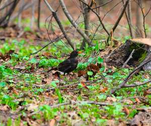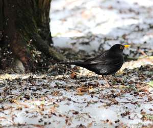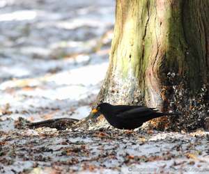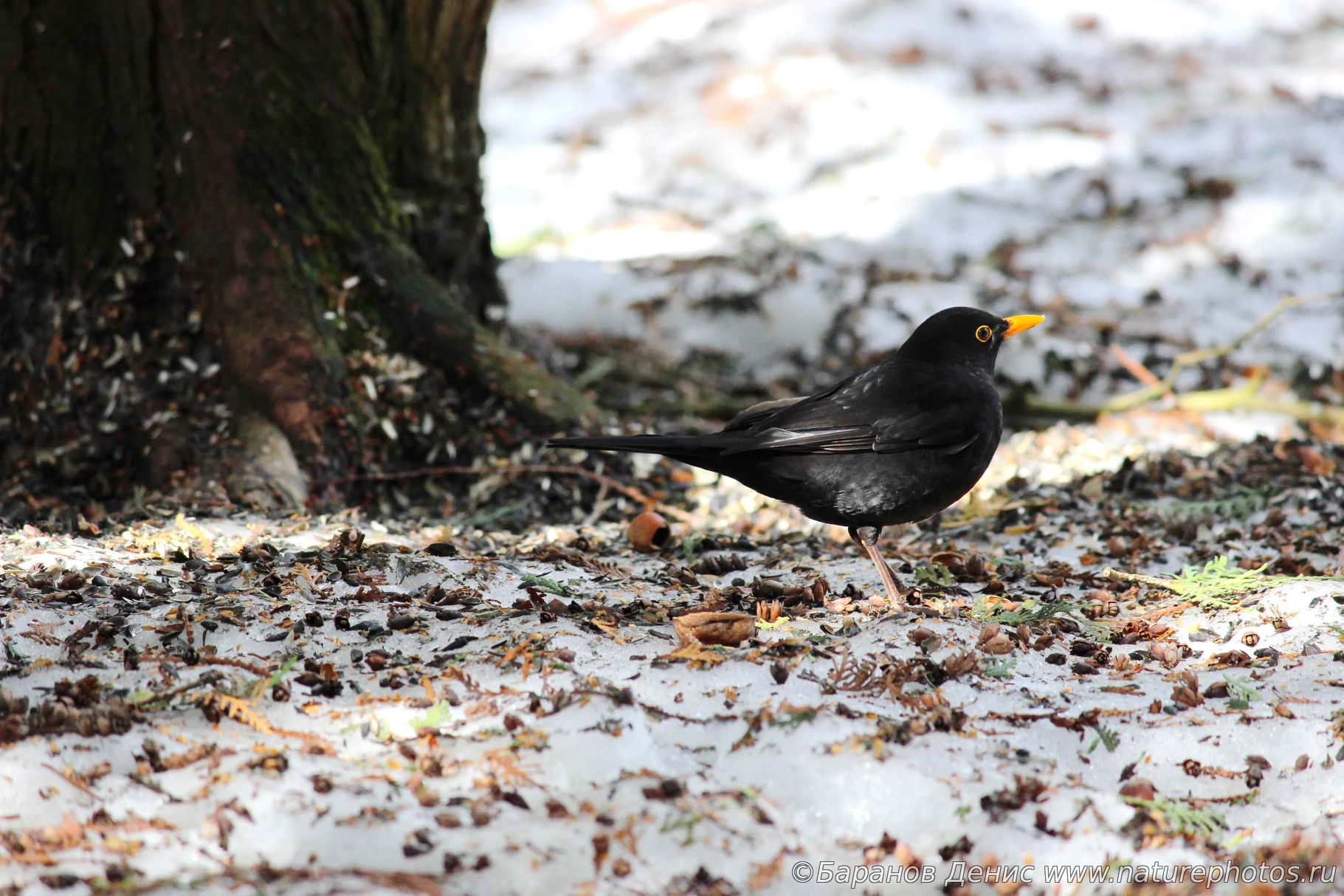Черный дрозд кормится семенами туи, ГБС, 30 марта 2024.
