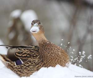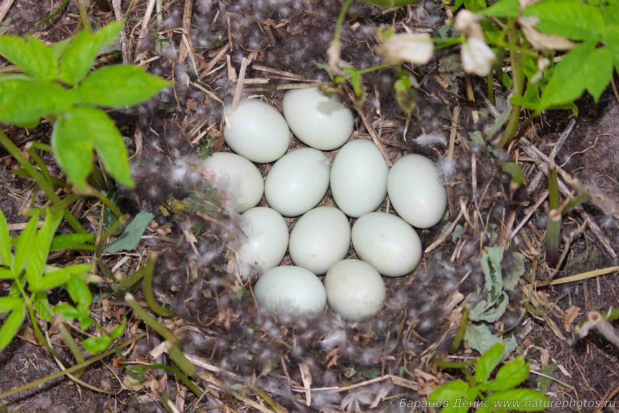 В кладке 11 яиц. Самка кряквы сделала гнездо прямо возле деревенского забора в крапиве. Самка не бросила гнездо даже после того, как над гнездом скосили траву. Самка стала насиживать кладку в открытую.