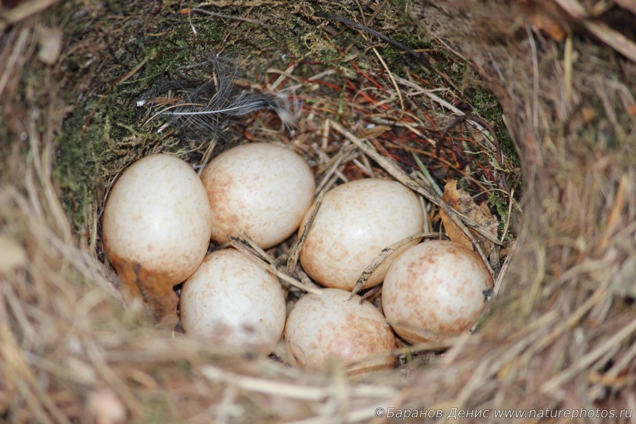 Гнездо зарянки с 6 яйцами на опушке леса под молодой ёлочкой. Ступинский р-н, деревня Шелково. 10.05.2024.