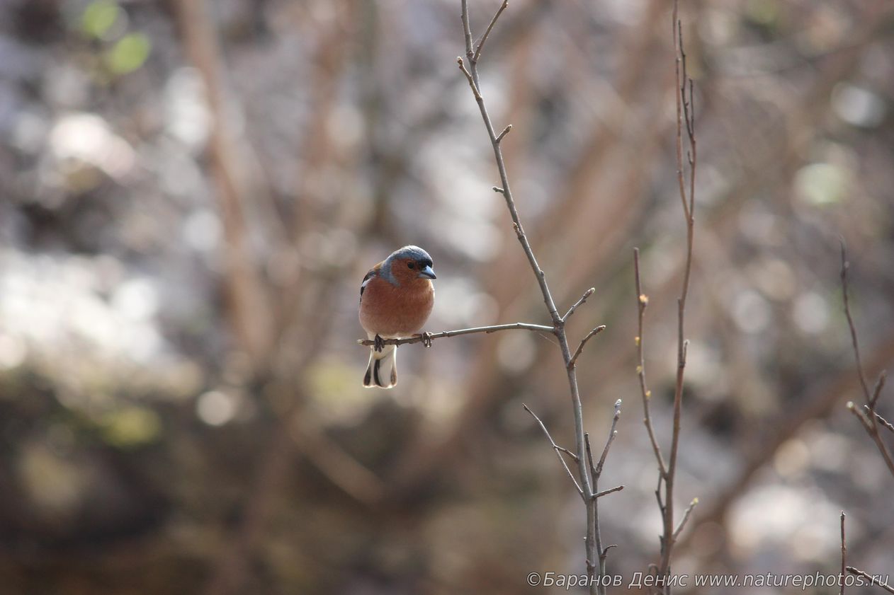Зяблик позирует на кустике, р.Лихоборка, 7 апреля 2024